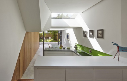 晚上的时候一袭软帘将厨房和客厅完全区分开,两边都成为独立的空间。